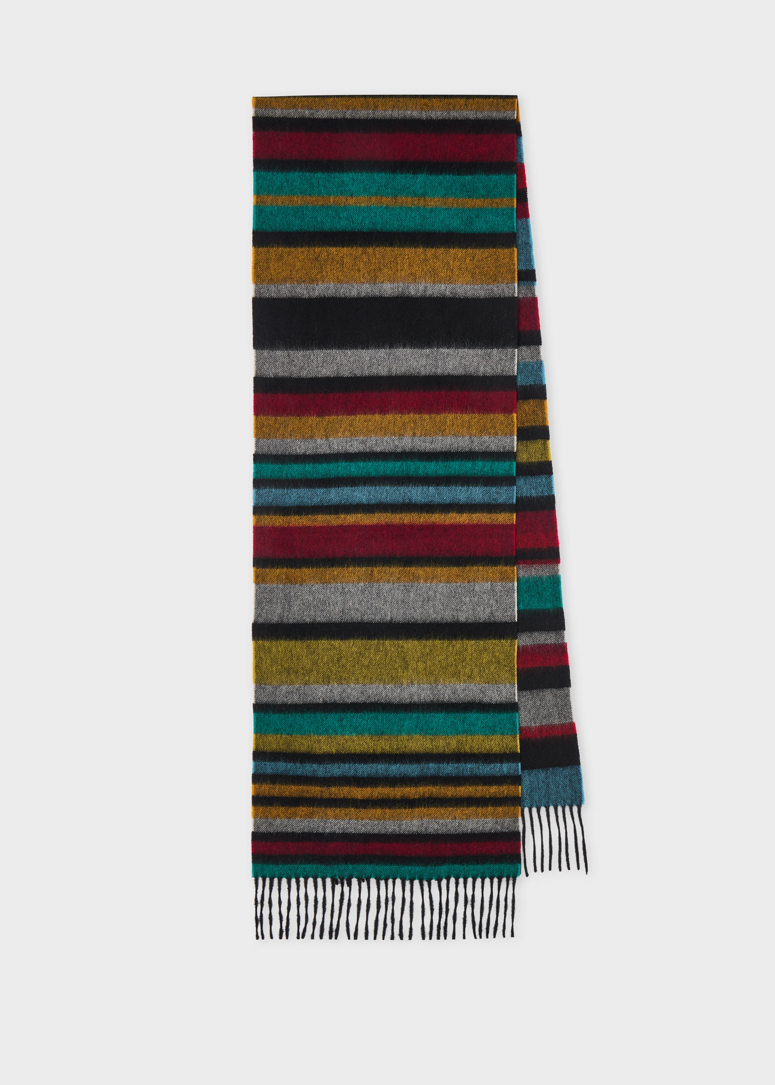 Made from 100% soft cashmere, this scarf features a large, 'Signature Stripe' pattern throughout. Complete with frayed edges, this scarf is perfect for adding a pop of colour to your transitional wardrobe. Product Code: M1A-150K-T707-92