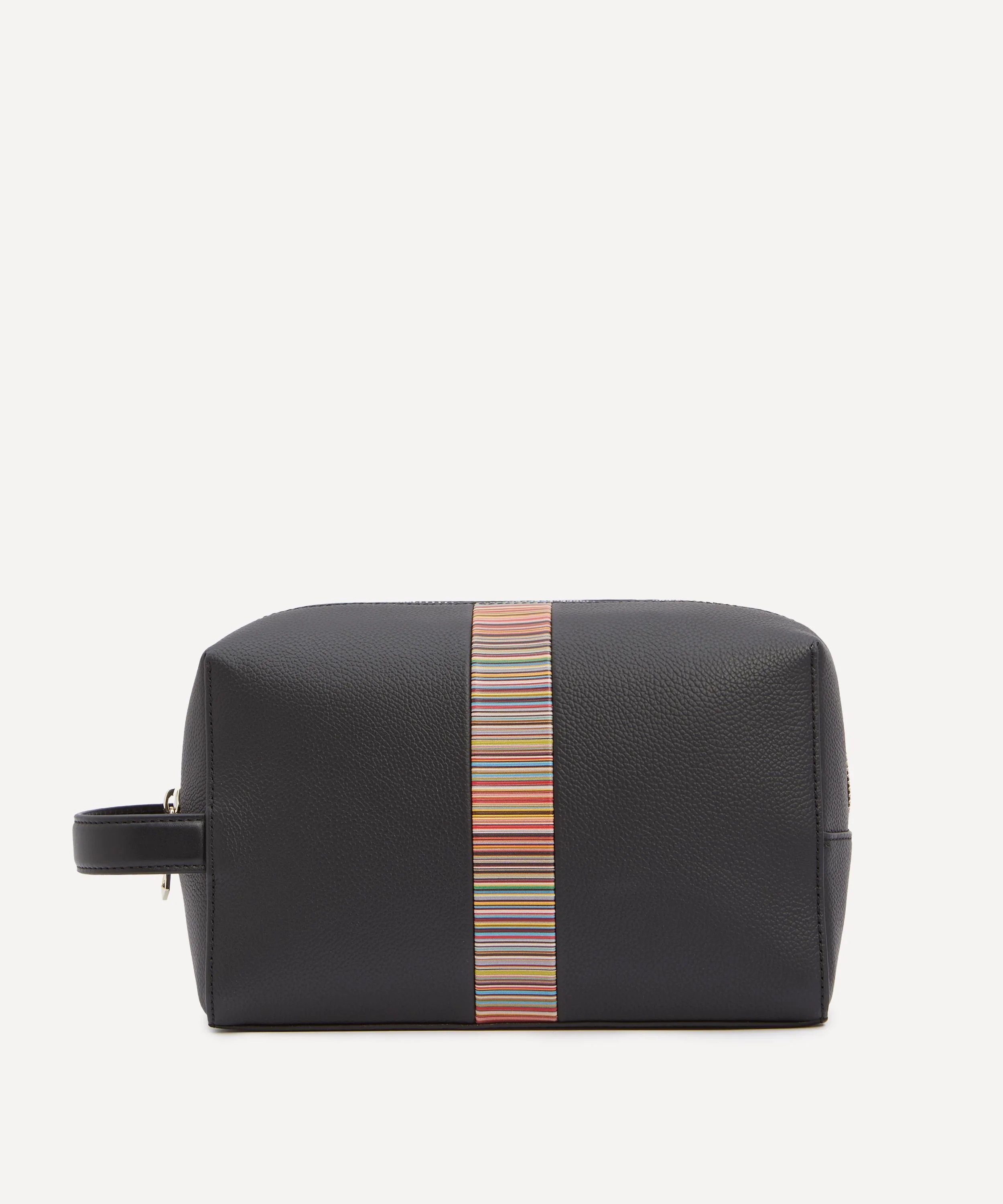 DETAILS Wash bag Grained leather Signature stripe insert Foil-embossed logo Tie-shaped zip pulls COMPOSITION & SIZE 100% Leather H: 13cm, W: 23cm, D: 11cm