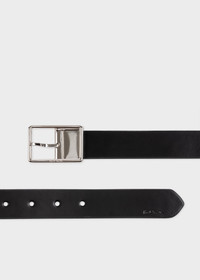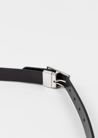 Made in Spain, this reversible belt features smooth black leather on one side and our classic 'Signature Stripe' on the other. Finished with a Paul Smith embossed silver buckle which is removable to allow the belt to be cut-to-fit. Belt width: 3 cm 100% Leather with Zinc Alloy Buckle Made in Spain Product Code: M1A-5152-CC2FMU-92A