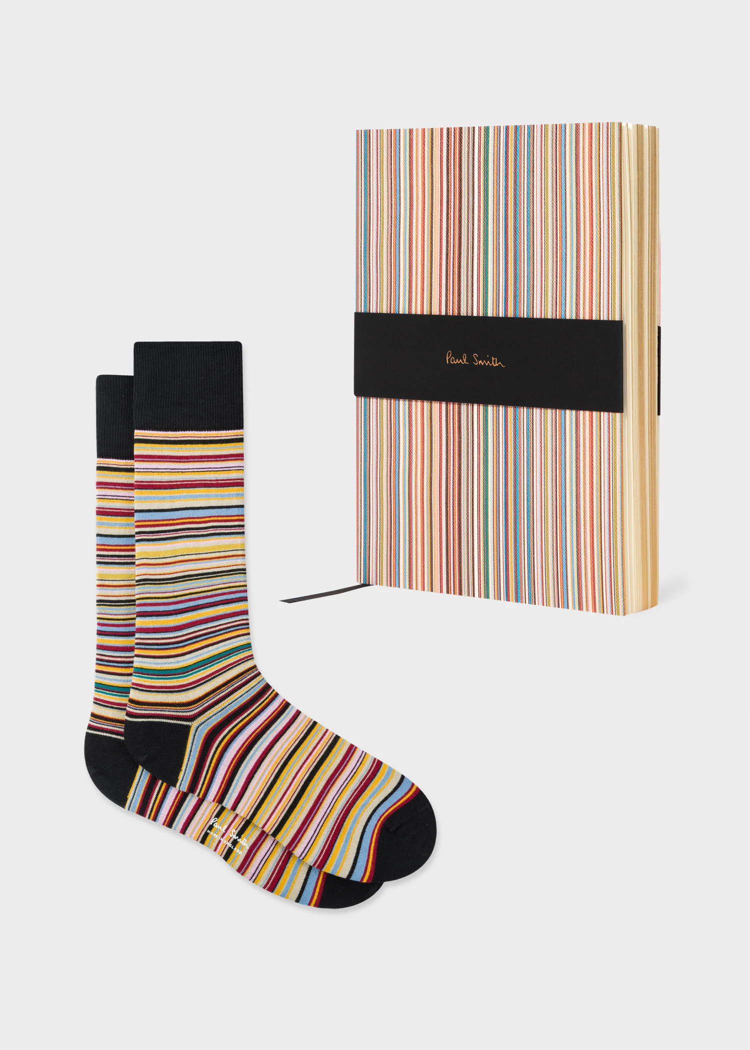 Presenting Paul Smith gift sets, specially curated gift sets presented in a Paul Smith box and gift wrap, making it easier to treat you or a loved one during the holiday season. Presenting Paul Smith gift sets, specially curated gift sets presented in a Paul Smith box and gift wrap, making it easier to treat you or a loved one during the holiday season. Made in Italy from a soft cotton-blend, these socks are finished with a black heel and toe. Knitted, 81% Cotton, 17% Nylon, 2% Spandex Machine washable, wash inside out This lined paperback notebook features a Paul Smith signature page footer, black ribbon marker and gold-foil page edging. This classic notebook is finished with a bold, removable black paper card slip across the centre exterior, finished with a gold Paul Smith signature. Size: 21 x 15.3cm 100% Paper, lined Product Code: M1A-ECOMM-JGIFT39-00