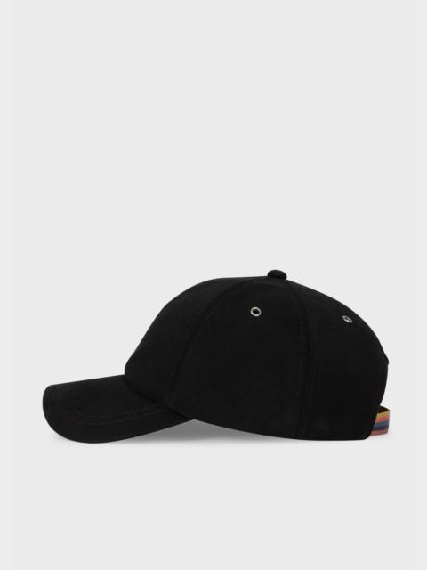 This navy wool cap features a 'Signature Stripe' trim, a leather adjuster, and a Paul Smith signature embossed metal buckle. 100% Wool with 100% Leather Trim Product Code: M1A-987DT-N086-49
