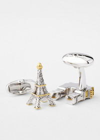 You will always have Paris with these signature souvenir cufflinks decorated with Parisian landmarks. These cufflinks are complete with a polished silver and gold toned finish, Paul Smith signature embossed T-bar fastenings, and are presented in a white gift box. Product Code: M1A-CUFF-USOUV-2A