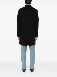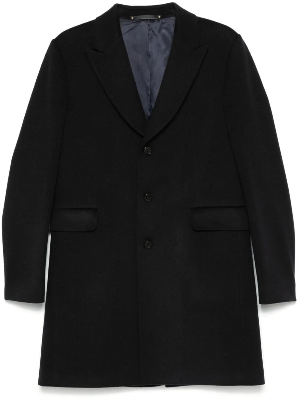 single-breasted coat Highlights - Midnight blue - Wool-cashmere blend - Brushed finish - Front button fastening - Peak lapels - Shoulder pads - Long sleeves - Two side flap pockets - Central rear vent - Internal slip pockets - Full lining - Straight hem Made in Italy Composition Outer: Wool 90%, Cashmere 10% Lining: Cupro 100% SIZE & FIT Model measurements Height 6 ft 2 in(1.87 m) Bust/Chest 37.79 in(96 cm) Hips 37.79 in(96 cm) Waist 30.31 in(77 cm) FittingInformation Designed for a slim fit, offering a comfortable fit that sits just away from the body The vented hem offers movement at the rear Made from a midweight non-stretch fabric