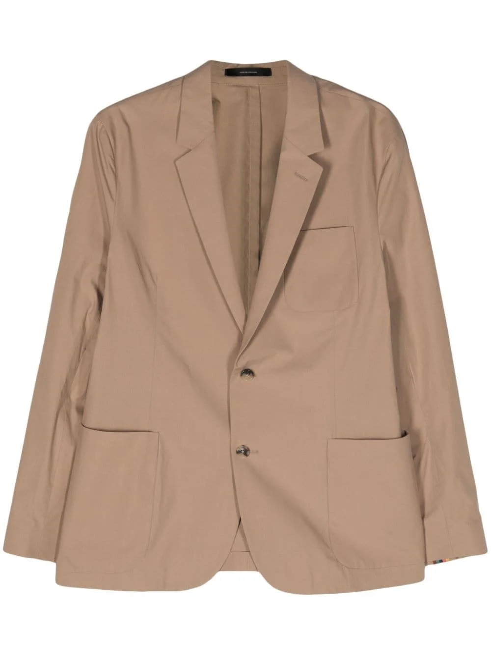 single-breasted cotton blazer Highlights - Beige - Cotton - Interlock twill weave - Dart detailing - Notched lapels - Front button fastening - Long sleeves - Buttoned cuffs - Three front patch pockets - English rear vents - Curved hem Imported Composition Outer: Cotton 100% Lining: Viscose 100% SIZE & FIT FittingInformation Designed for a slim fit, offering a comfortable fit that sits just away from the body The vented hem offers movement at the rear Made from a lightweight non-stretch fabric This piece fits true to size – take your usual size