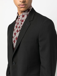 single-breasted suit Highlights - Black - Wool-mohair blend - Jacket: - Notched lapels - Front button fastening - Chest welt pocket - Two front flap pockets - Long sleeves - Trousers: - Belt loops - Straight leg - Tailored design - Concealed front fastening - Pressed crease - Two diagonal pockets to the sides - Two rear welt pockets Made in Italy Composition Outer: Wool 84%, Mohair 16% Lining: Cupro 100% SIZE & FIT Model measurements Height 6 ft 2 in(1.87 m) Bust/Chest 38.18 in(97 cm) Hips 36.61 in(93 cm) Waist 29.13 in(74 cm) FittingInformation Tailored for a slim fit, offering a comfortable fit that sits just away from the body The unfinished hems allow for the length to be altered Made from a midweight non-stretch fabric This piece fits true to size – take your usual size Washing instructions Dry Clean Only