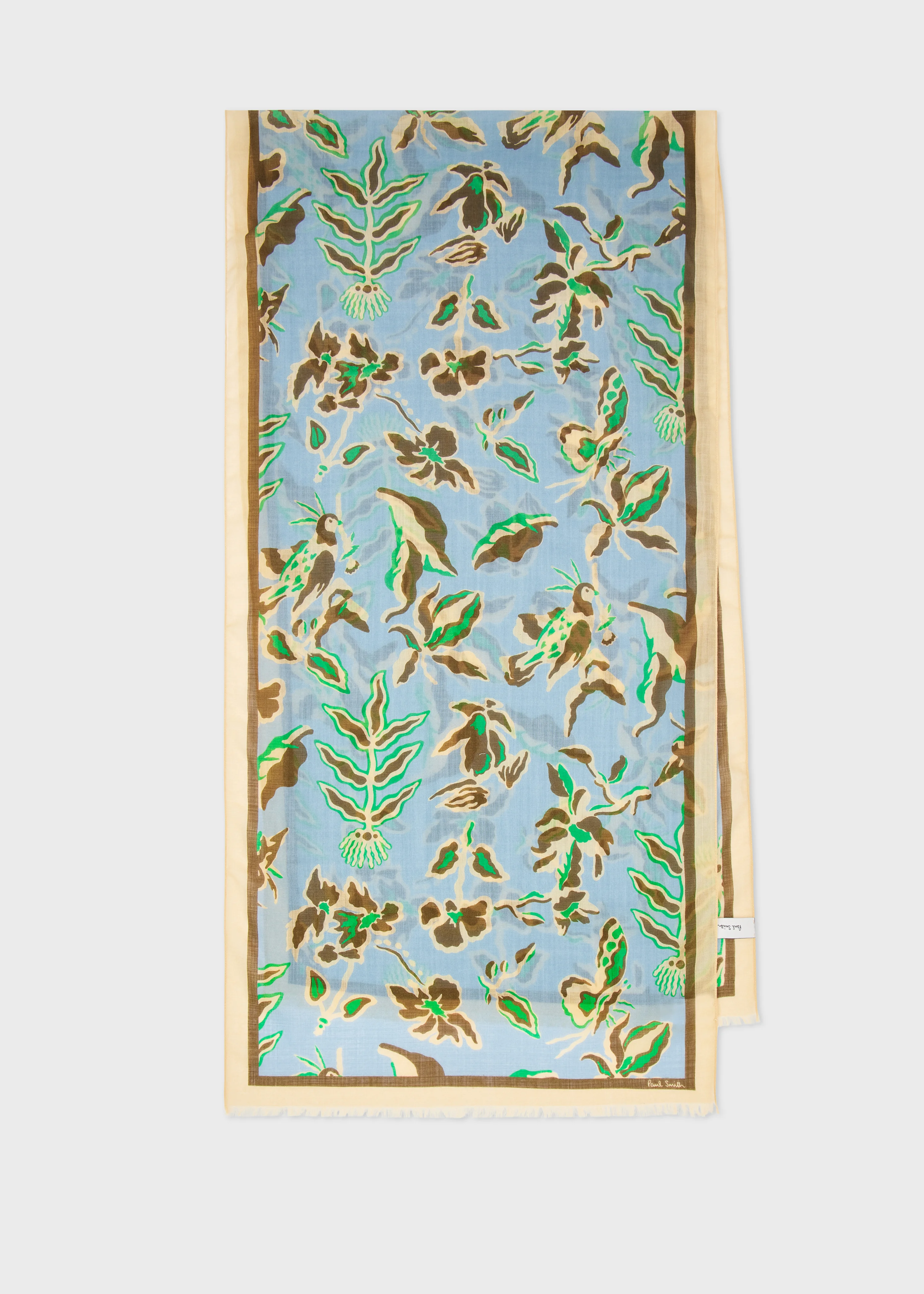Made in Italy from soft merino wool, this blue scarf is decorated with the 'Bohemia' print. Finished with frayed ends and subtle signature detailing, it has a lightweight drape for easy styling and layers effortlessly over coats and knitwear. Product Code: M1A-150P-T617-43