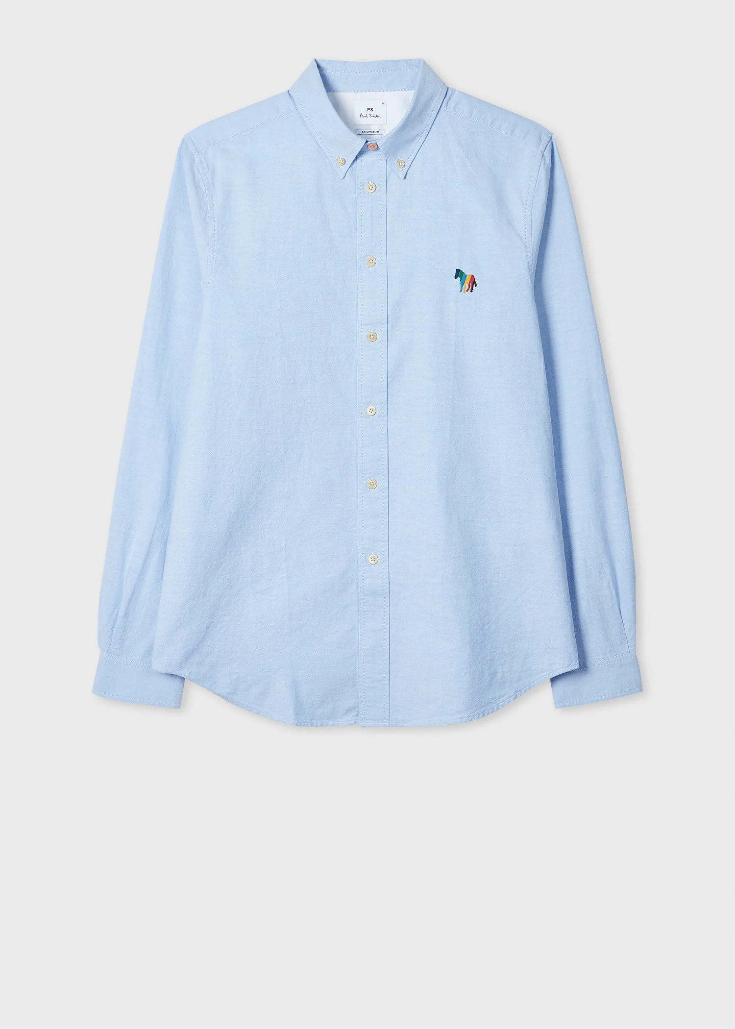 Made from 100% organic Oxford cotton, this sky blue long-sleeve shirt features our 'Broad Stripe Zebra' logo embroidered on the chest. This shirt is finished with tonal buttons, button-down collar and contrast cuff lining. The Fit - Tailored-Fit is cut for a slightly slimmer fit through the waist. Product Code: M2R-599RZ-T21846-40