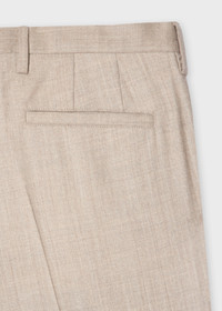 Made in Portugal from a wool and cashmere-blend flannel cloth for a soft finish, these beige trousers have a subtle marl finish. Cut for a slim-fit, pair with the matching blazer for a statement tailored look. The Fit - Slim-Fit low rise trouser, cut slim from the hip through the leg. Product Code: M1R-150M-V00109-60A