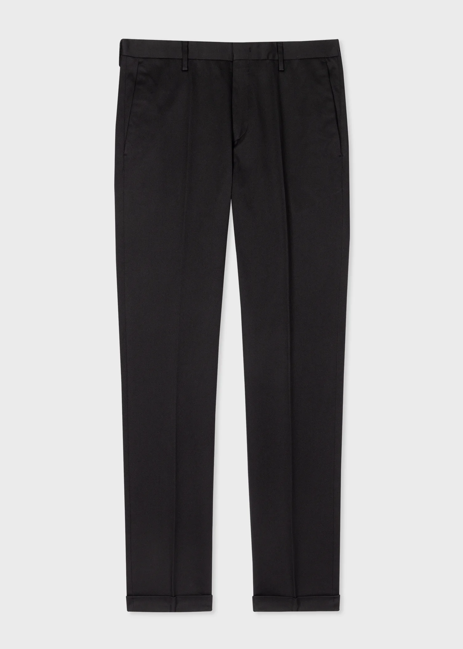 Made in Portugal from an organically grown cotton cloth with stretch for added comfort, these black chinos feature classic styling with turn ups at the hem. Woven, 98% Organically Grown Cotton, 2% Elastane Machine washable Made in Portugal The Size Model wears a size 30 Model measures: Height: 186cm / 6’1” | Chest: 96.5cm / 38” | Waist 78cm / 30.5 The Fit Slim-Fit is cut for a close fit through the leg. Product Code: M1R-255U-M02138-79