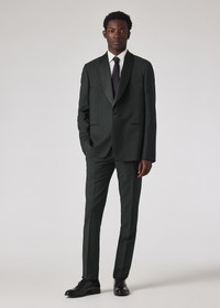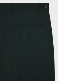 Made in Italy from a premium wool and mohair blend, these classic dark green evening trousers are cut for a slim-fit. Ideal for pairing with stylish evening-wear, these trousers are complete with contrasting taping on the sides. 84% Wool, 16% Mohair Dry clean only Made in Italy The Size Model wears a size 30 Model measures: Height 6.1.5 ” / 187cm | Waist 27”/ 69cm | Chest 30 “/ 76cm The Fit Slim-Fit is cut for a close fit through the leg. Product Code: M1R-935T-K00002-39B