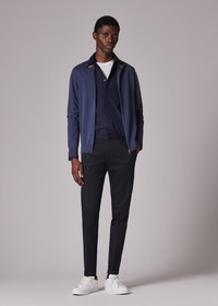 Made in Portugal from an organically grown cotton cloth with stretch for added comfort, these dark navy chinos feature classic styling with turn ups at the hem. The Size Model wears a size 32 Model measures: Height 6’2’’ / 188cm | Chest 37’’ / 93.5cm | Waist 30”/ 76.5cm" The Fit Slim-Fit is cut for a close fit through the leg. Product Code: M1R-255U-M02138-49