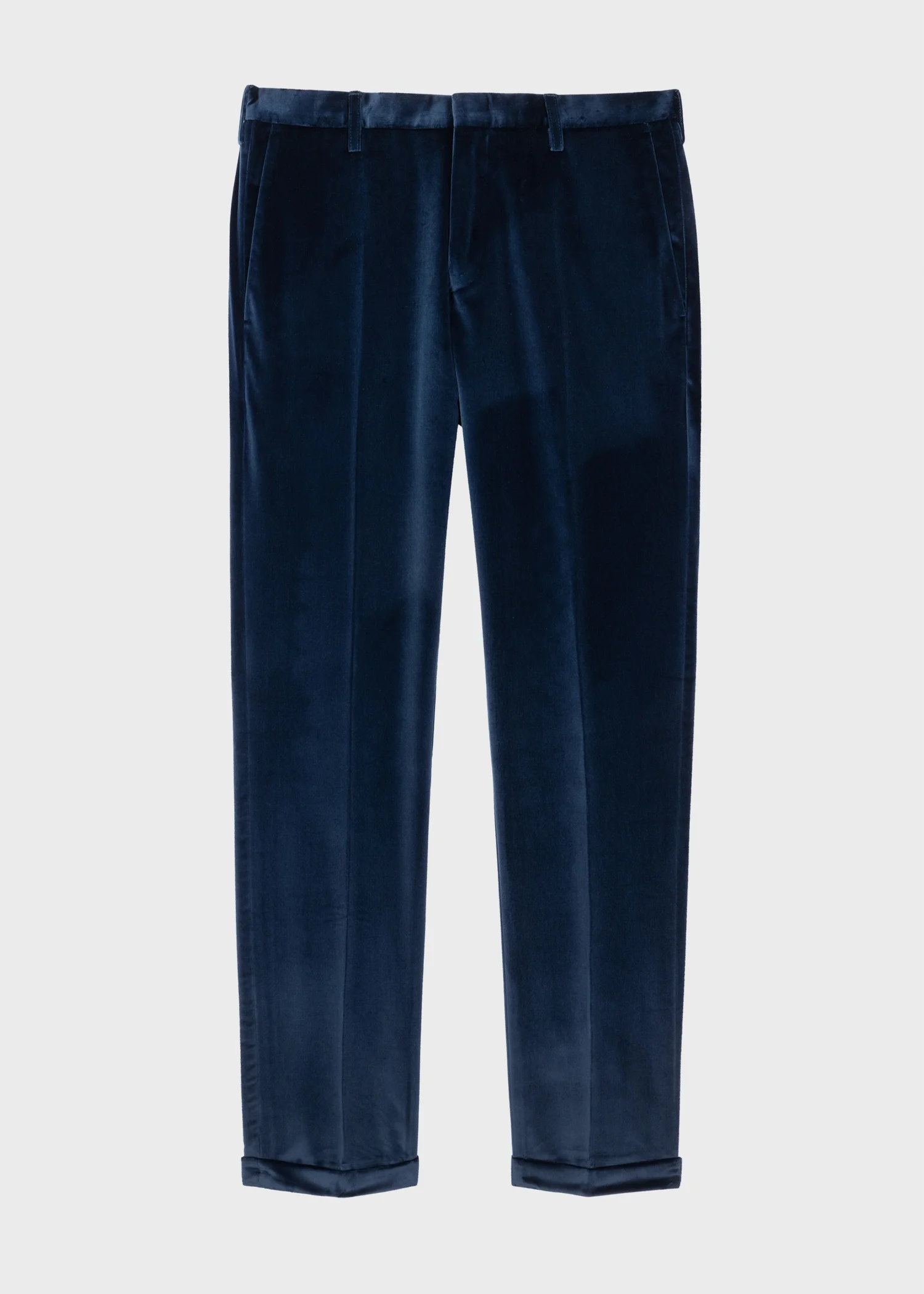 Made in Portugal from 100% cotton velvet, these navy pants feature a classic design with a slim-fit. 100% Cotton Dry clean only Made in Portugal Product Code: M1R-150M-G01346-48