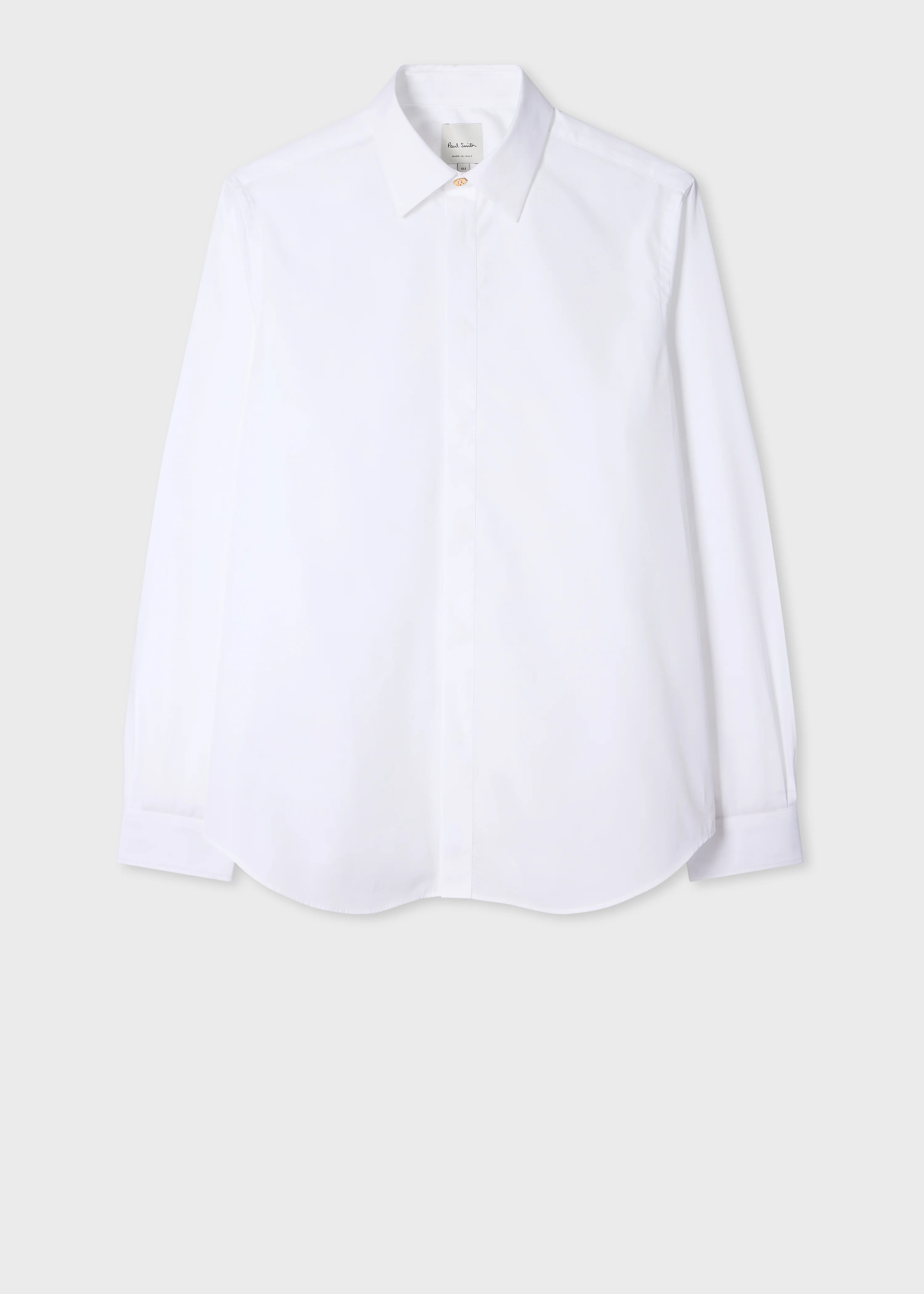 Slim-Fit White Cotton-Poplin Fly-Front Shirt