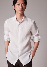 Made in Italy from lightweight linen for a breathable finish, this white long-sleeve shirt features classic styling. Order today with FREE shipping offers available. 100% Linen Machine washable Made in Italy The Fit Slim-Fit is cut for a close fit through the body. Product Code: M1R-790Y-P01656-01