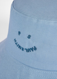In a classic bucket silhouette, this blue hat is crafted from breathable cotton and finished with our playful 'Happy' motif. Ideal for sunny days and casual looks. The Size Hat circumference: S - 56cm M - 58cm L - 60cm Product Code: M1A-921DT-T650-40