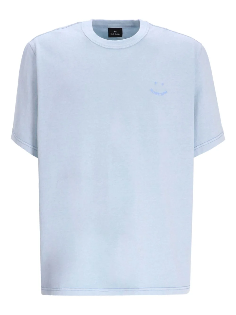 smiley-face cotton t-shirt Highlights - Light blue - Crew neck - Short sleeves - Cotton - Smiley face print - Straight hem Imported Composition pure cotton 100% Washing instructions Read Manufacturer Guidelines