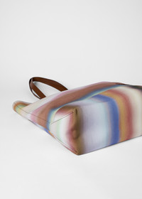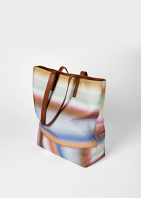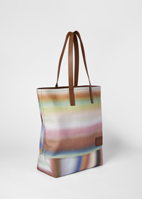 Made from a recycled polyester and cotton-blend canvas, this north south style tote bag features a digitally printed 'Smith Stripe' pattern. Complete with an oversized signature logo leather patch and internal patch pocket. * Digitally printed * Tan leather handles * Internal patch pocket * Size: H40 x W40 x D14cm * 50% Recycled Polyester, 50% Recycled Cotton with leather trim Product Code: M1A-8101-PSMITH-PR