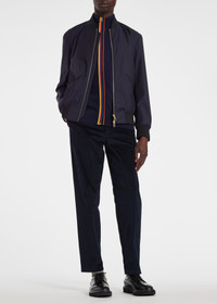 Made using a technical wool cloth from Loro Piana and treated with Green Storm System® for a waterproof and wind-resistant finish. Updated for 2023, this timeless, wardrobe staple, Paul Smith bomber jacket now features the iconic 'Signature Stripe' throughout the internal fabrics. Both on the cupro lining inside the arms and trimmed along the edge of the ribbed collar, cuffs and waistband. 100% Wool outer | 100% Viscose cupro lining Dry clean only Made in Italy Loro Piana's latest pioneering achievement is Green Storm System®, an eco-friendly treatment that gives protection from rain and wind to any natural fabric. Green Storm System® uses a bio-based membrane derived from 50% renewable plant sources, and is complemented by the exclusive PFC-free. Not only does Green Storm System® guarantee the utmost comfort and performance, it respects our natural world, ensuring a condition of absolute well-being for professional and amateur athletes, world travellers and business people alike, regardless of weather conditions, season, or physical activity. Product Code: M1R-275U-L00041-49