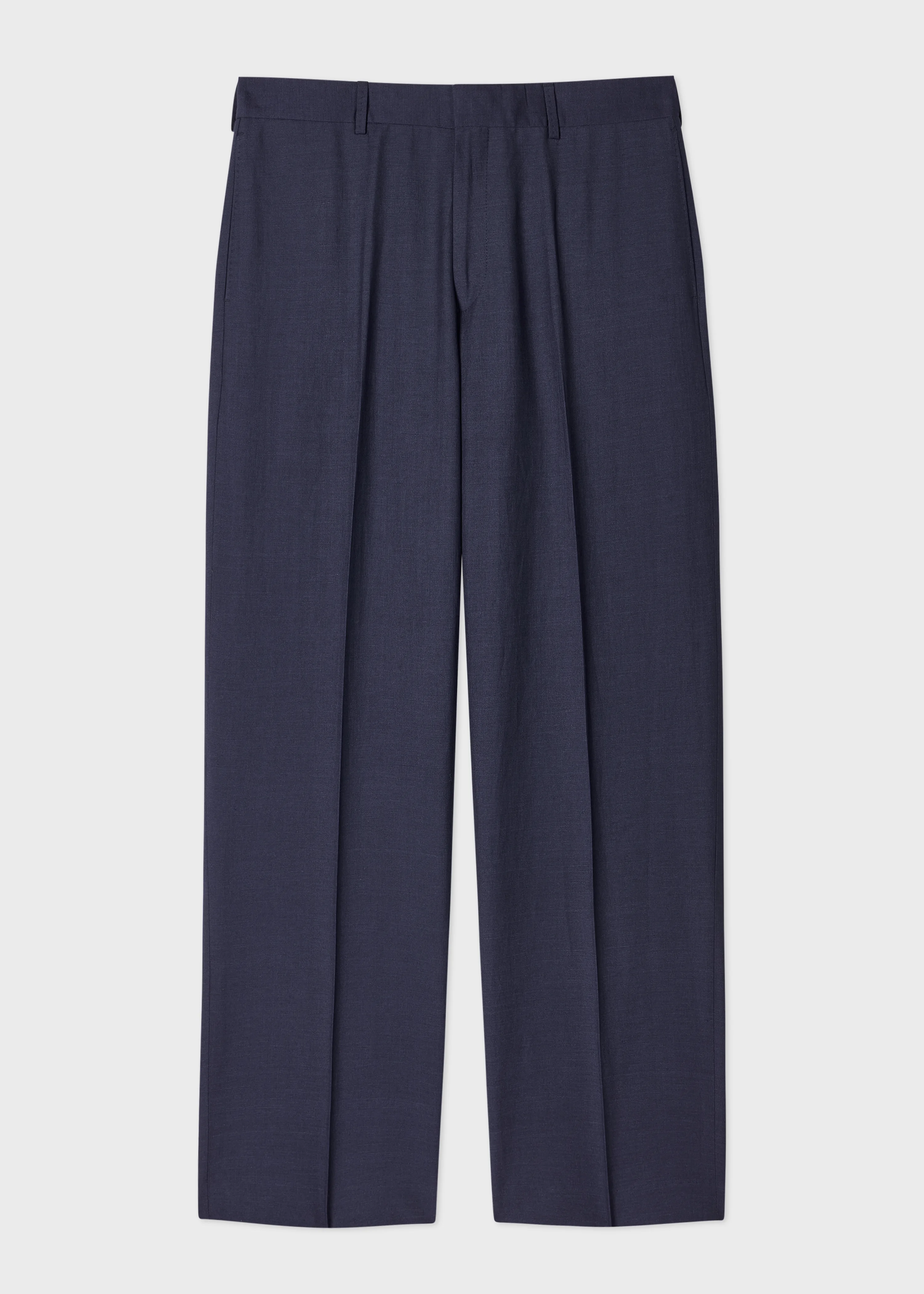 Crafted in Portugal from a wool and linen-blend, these trousers feature a classic navy finish. Cut for a wider, straight leg shape, these trousers are finished with a zip fly with hook-and-eye fastening. The Fit - Straight-Fit - Mid rise - Hem breaks on the shoe Product Code: M1R-410Z-V02900-46