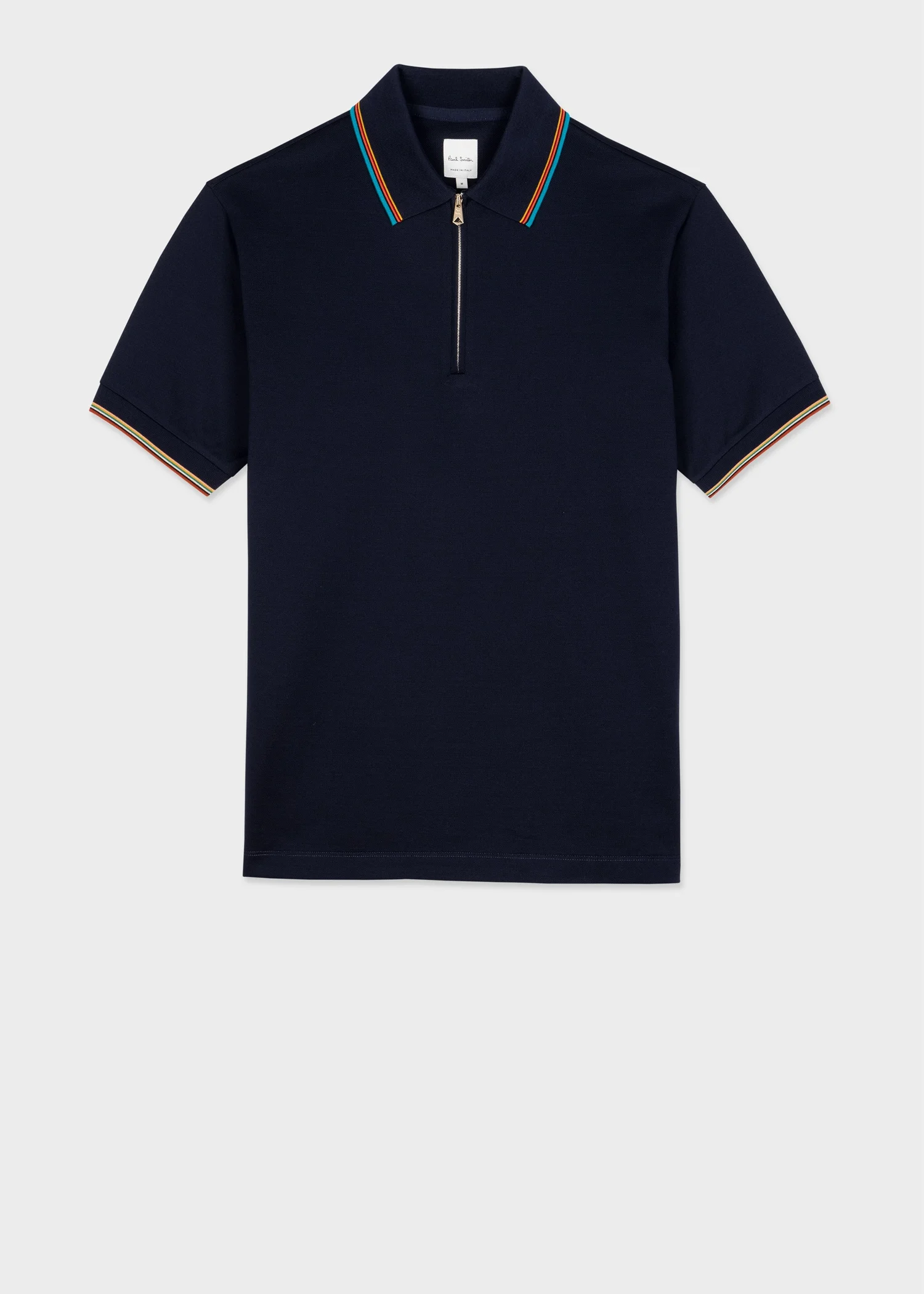 Made in Italy from 100% soft cotton-pique, this navy blue polo shirt features a contrasting striped collar and sleeves, complete with a zip-up placket. An updated look on a timeless silhouette, this polo shirt can elevate your smart causal look to take it from day-to-night with the addition of complimentary tailoring. Made in Italy 100% Cotton Machine Washable Product Code: M1R-487Y-L00089-49