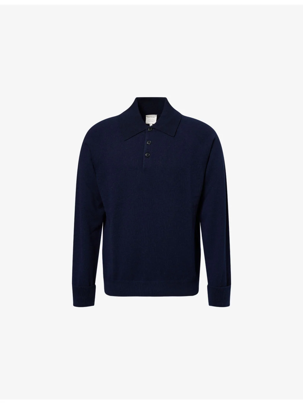 PRODUCT DETAILS - Paul Smith cashmere polo shirt - 100% cashmere - Exposed popper fastenings at front - Polo collar - Elasticated cuffs - Regular fit, collar, long sleeves, striped cuffs, all-over knitted, ribbed trims - Hand wash cold - Made in Italy - Model is 6ft 2in/1.88m and wears a size medium - Midweight, stretchy Ref: R04484551