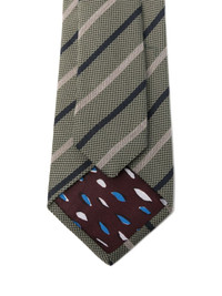 striped tie Highlights - Olive green - Diagonal striped pattern - Pointed tip Made in Italy Composition Silk 100%, Wool 100%