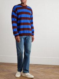 Striped Wool and Cotton-Blend Sweater Blue