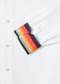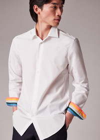 Crafted in Italy from 100% cotton-poplin cloth from the renowned Thomas Mason Mill, this refined long-sleeve shirt is cut in a tailored-fit with colourful 'Artist Stripe' cuff lining - adding a playful twist to a classic style. French placket Two-way functioning cuff, allowing button and cufflink fastening Curved hemline Rear darts, for a refined fit Woven 100% Cotton Machine washable Made in Italy Product Code: M1R-800P3-L00050-01