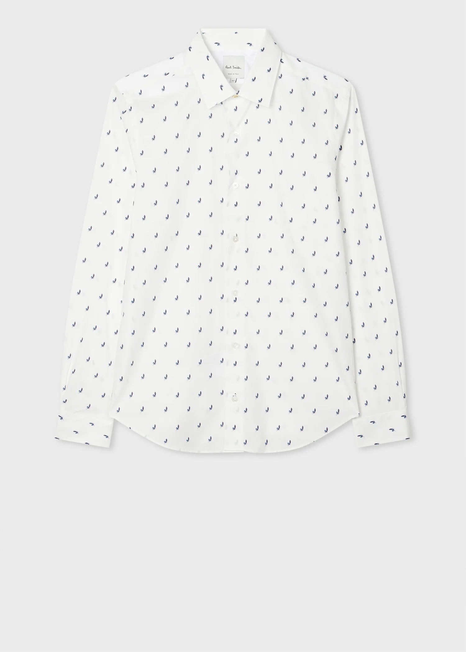 Super Slim-Fit White 'Butterfly' Print Shirt