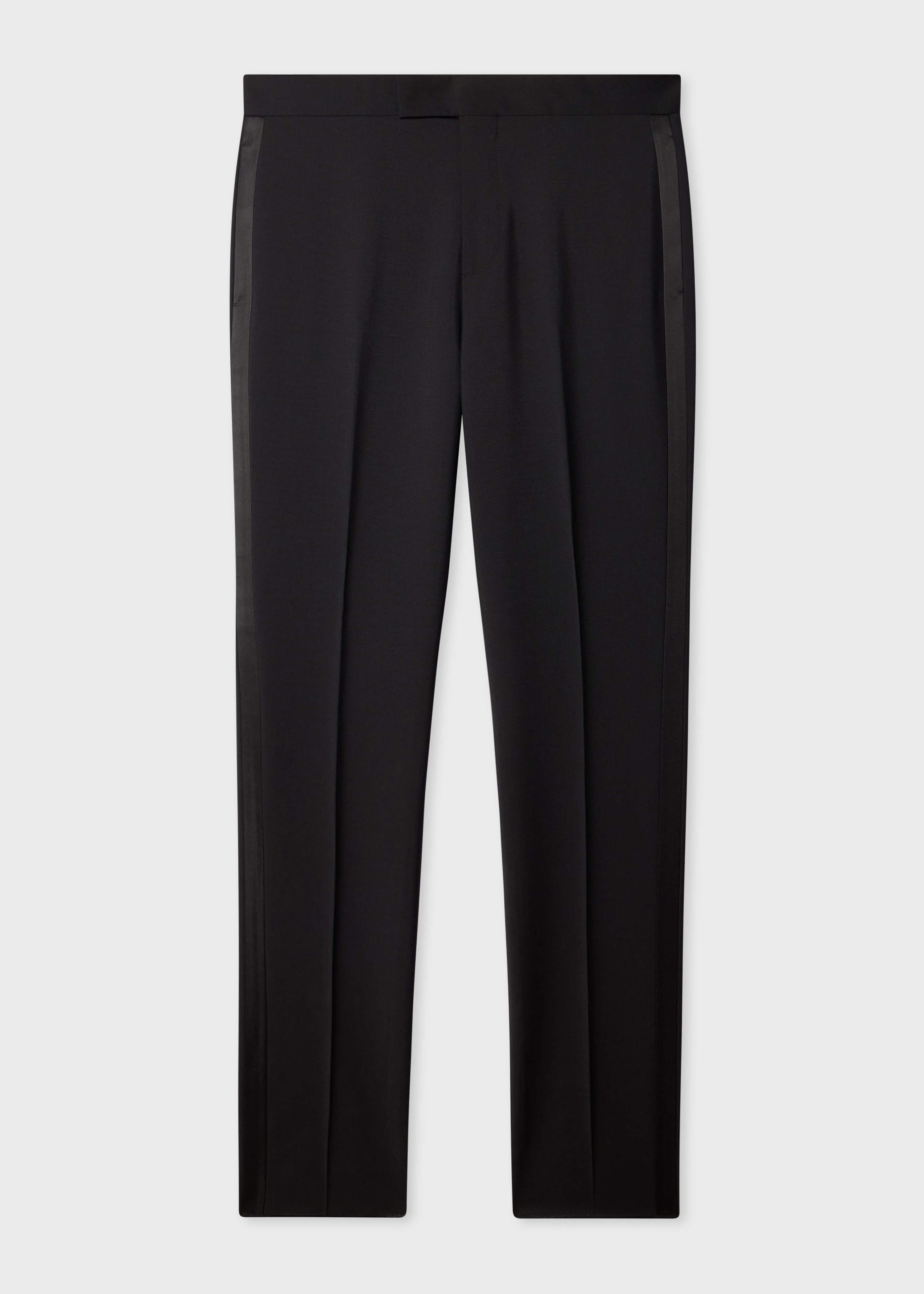 Crafted in Italy from a premium wool-mohair construction for added crease resistance and airiness, these black trousers feature a tonal satin side stripe. Cut in our Brierley shape, these trousers are finished with on-seam side pockets and button-adjustable waist tabs. The Fit - Tailored-Fit Product Code: M1R-887Z-V00002-79