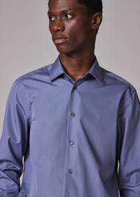 Crafted in Italy from 100% cotton poplin, this refined blue long-sleeve shirt is cut in a tailored-fit with a 'Signature Stripe' cuff lining - adding a playful twist to a classic style. Featuring a point collar with removable bones, this piece is finished with pearlescent buttons throughout. The Fit - Tailored-Fit is slim through waist and wider through the chest and hem. Product Code: M1R-800P2-L00050-42A
