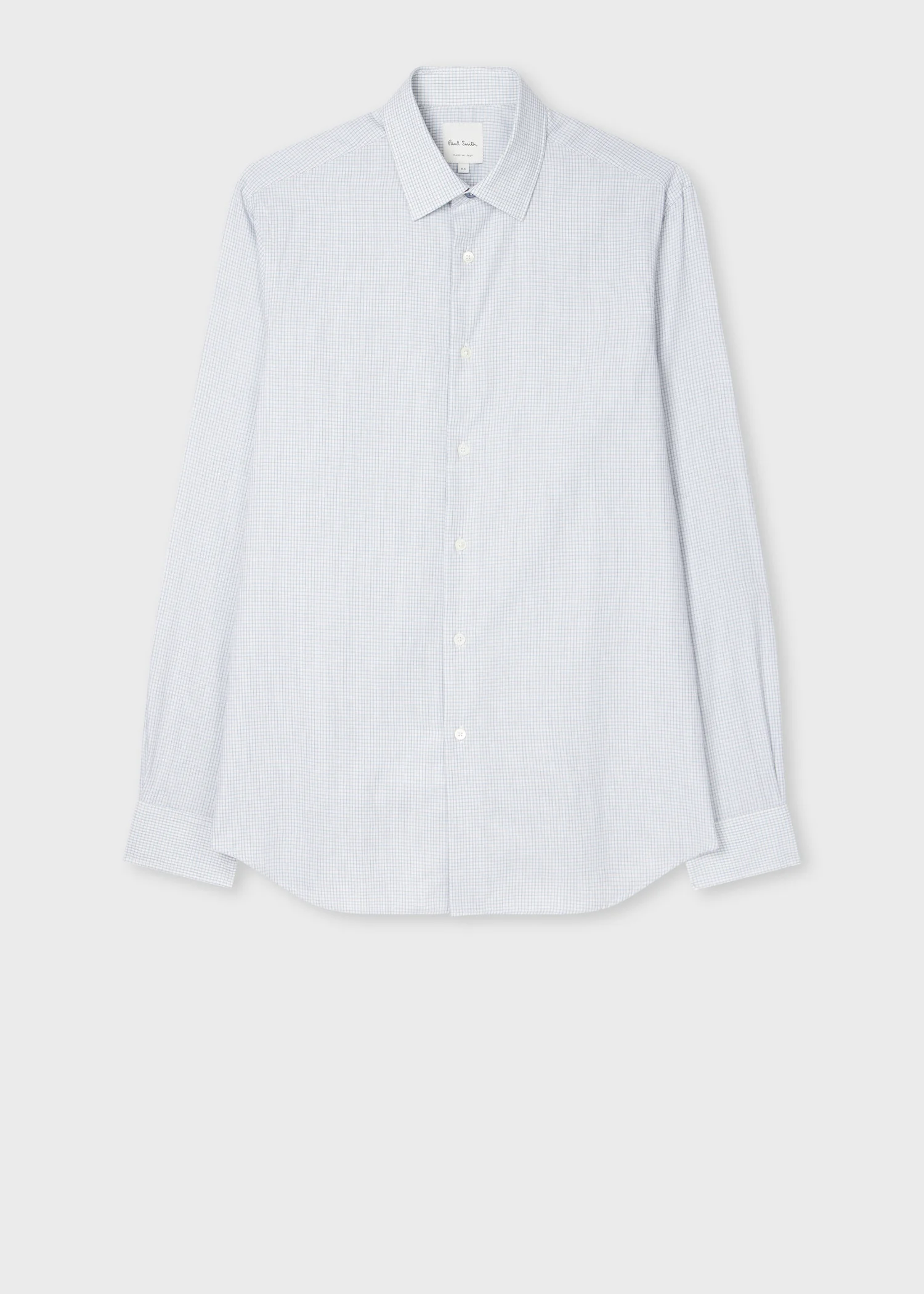 Crafted in Italy from a cotton construction, this refined long-sleeve shirt is cut in a tailored-fit with a subtle blue check flannel design throughout for added depth. The Fit - Tailored-Fit is cut slimmer through the waist, and wider through the chest and hem. Product Code: M1R-800P-T02793-40