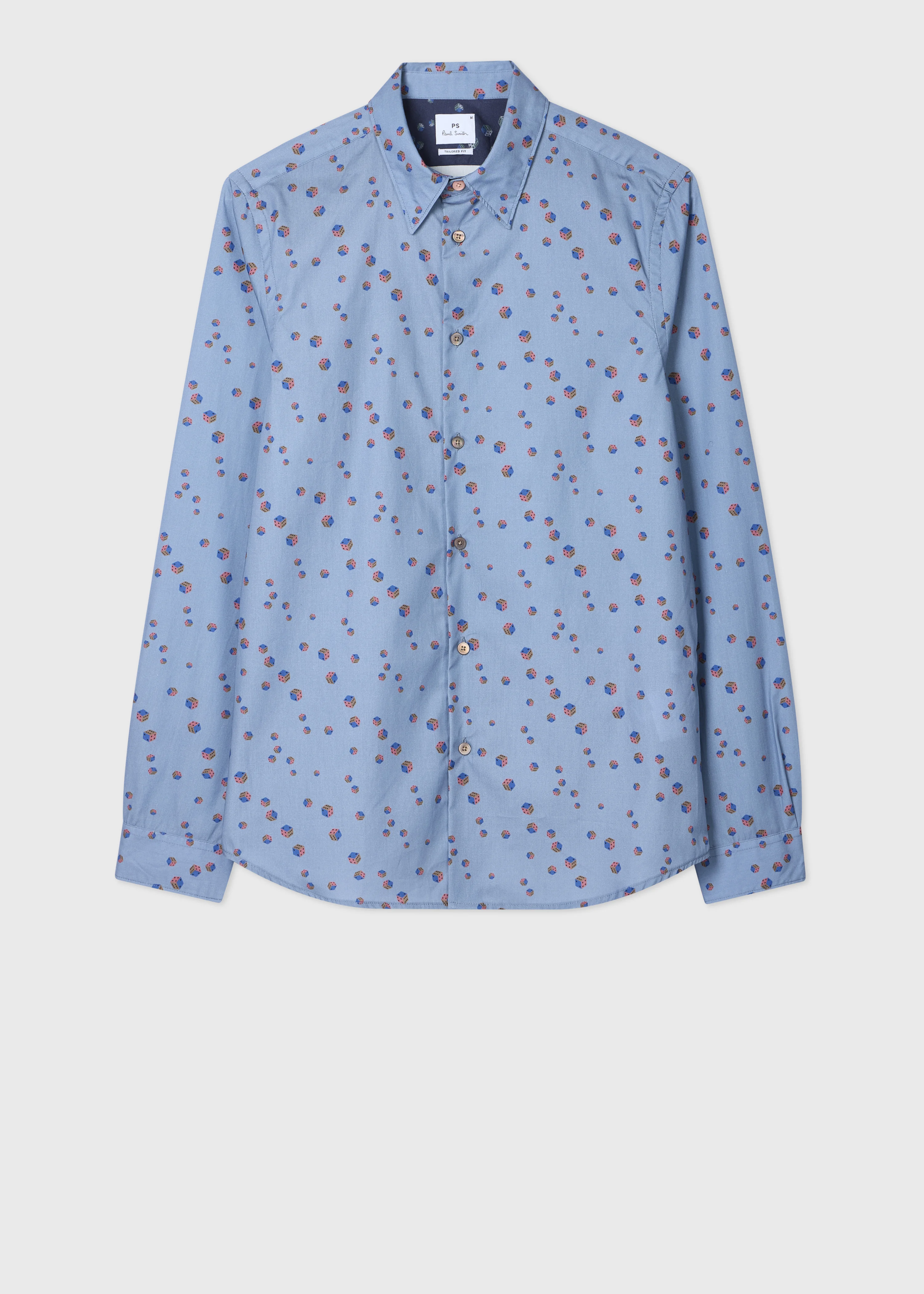 Tailored-Fit Light Blue 'Dice' Print Shirt
