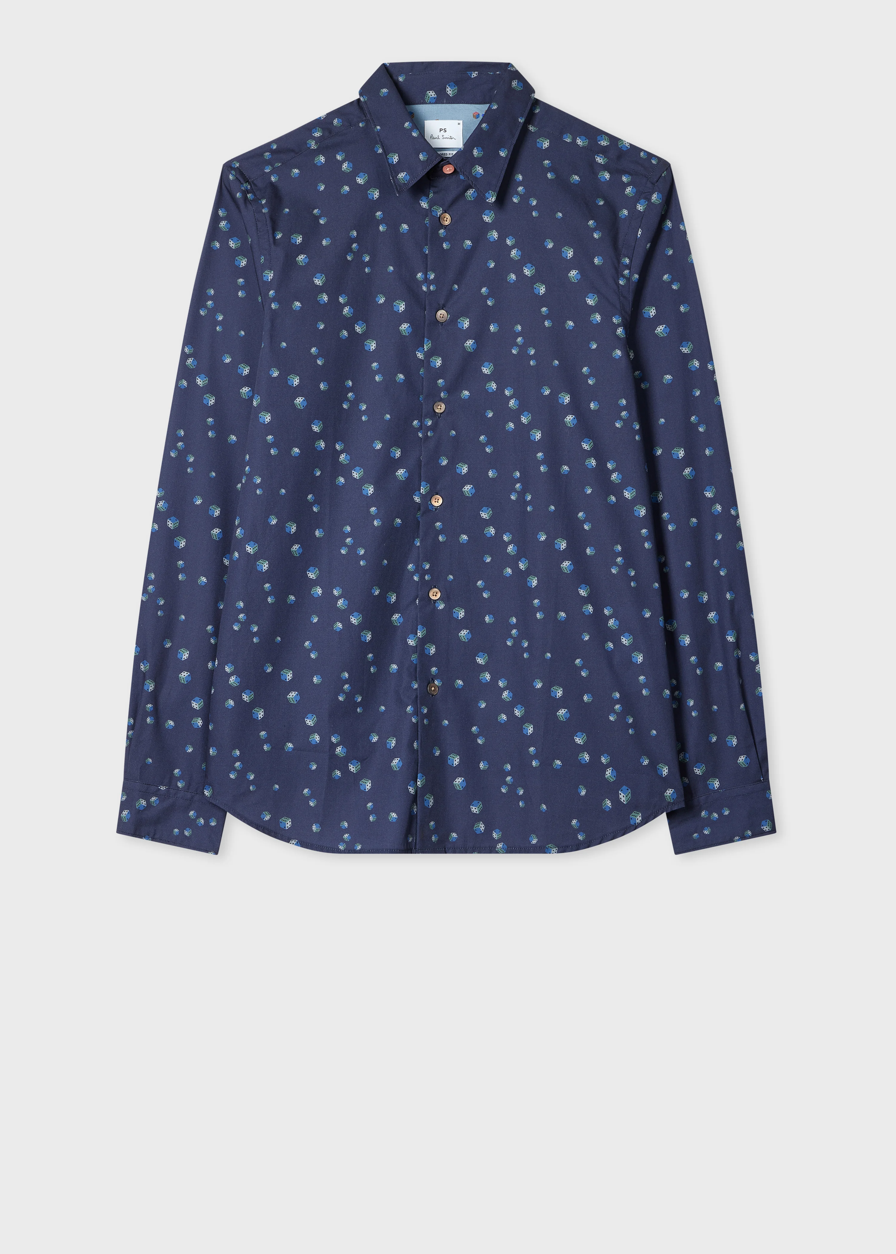 Tailored-Fit Navy 'Dice' Print Shirt