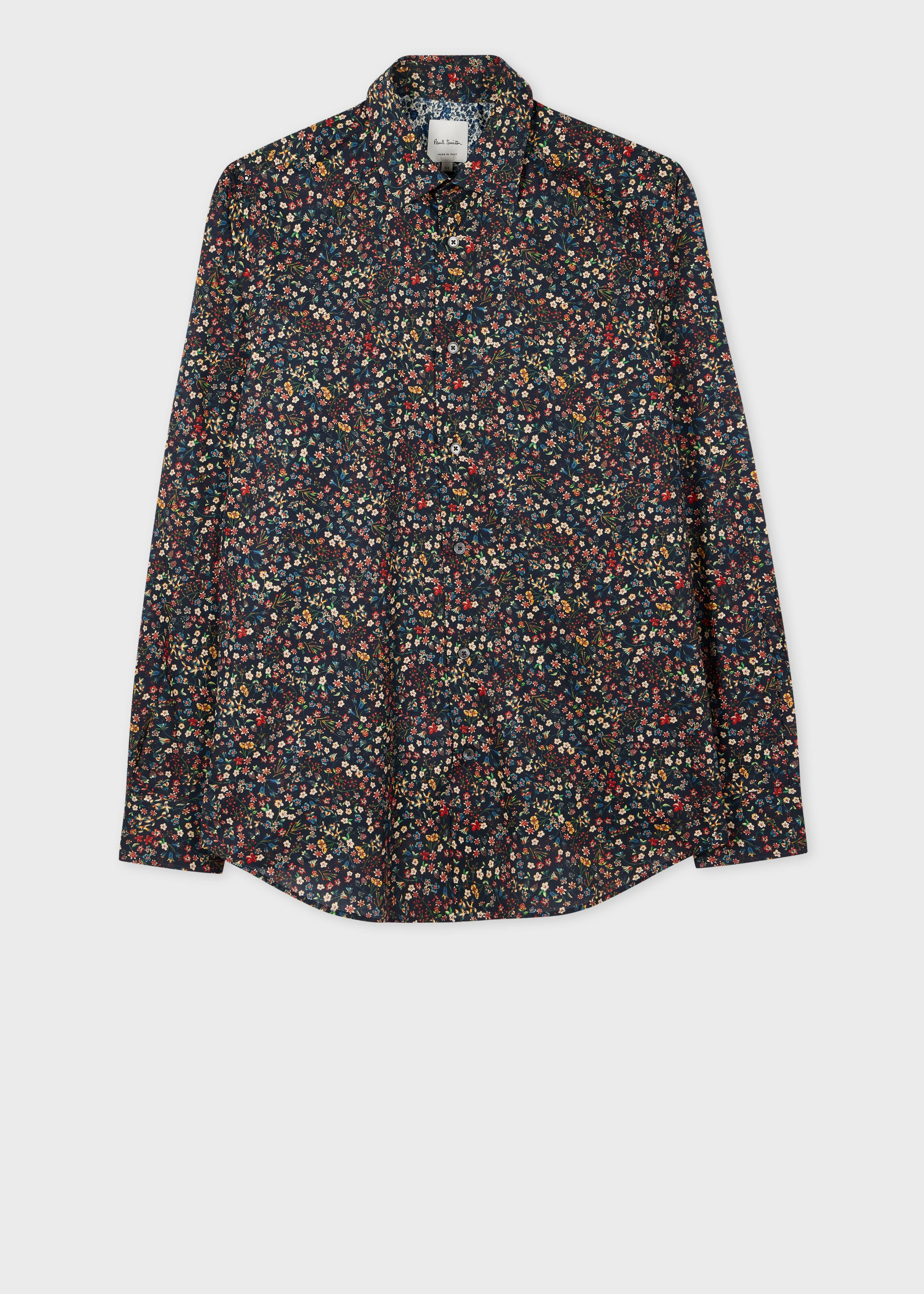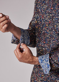 Made in Italy from 100% organically grown cotton, this long-sleeve shirt features a navy Liberty Floral print. Cut for a tailored-fit, this shirt comes complete with a point collar with removable bones and contrast cuff and yoke lining - for an added twist. 100% Cotton Machine washable Made in Italy The Fit Tailored-Fit is cut slimmer through the waist, and wider through the chest and hem. Product Code: M1R-800P-T02703-47