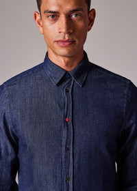 Made from 100% organic cotton denim with a dark rinse finish, this long-sleeve shirt is cut for a tailored-fit. Complete with multicolour buttons and stripe yoke and cuff lining for a signature twist to this classic style The Fit - Tailored-Fit is cut for a slightly slimmer fit through the waist. Product Code: M2R-612P-T22096-R