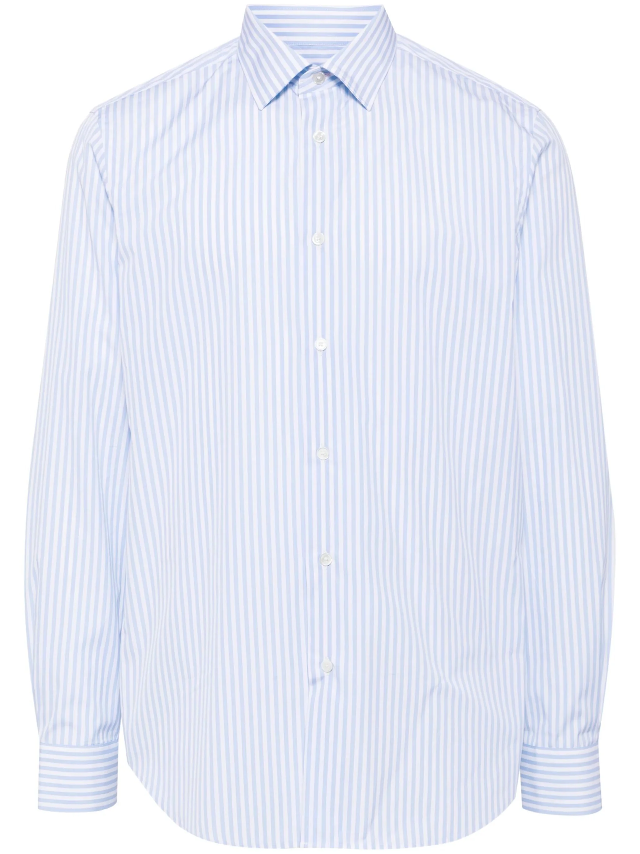COTTON BLUE/WHITE BUTTON FASTENING STRIPE PRINT BUTTONED CUFFS CLASSIC COLLAR LONG SLEEVES CURVED HEM