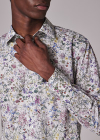Made in Italy from 100% organically grown cotton, this long-sleeve shirt features a white base with a seasonal Liberty Floral print. Cut for a tailored-fit, this shirt comes complete with a point collar with removable bones and contrast cuff and yoke lining - for an added twist. 100% Cotton Machine washable Made in Italy The Fit Tailored-Fit is cut slimmer through the waist, and wider through the chest and hem. Product Code: M1R-800P-T02703-01