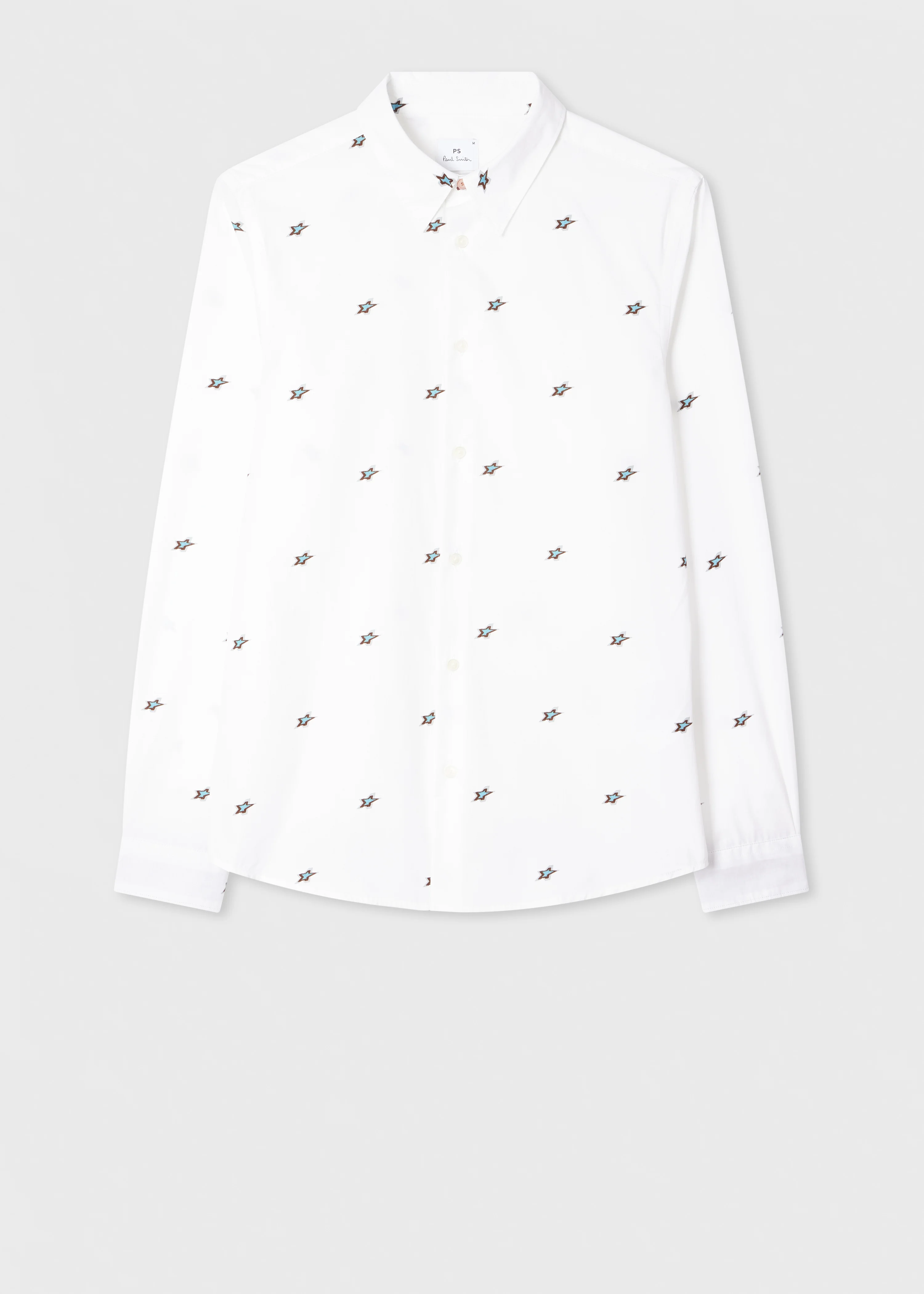 Made from lightweight 100% organically grown cotton, this white long-sleeve shirt features a repeating graphic star print. Cut for a tailored-fit, this shirt is finished with tonal shell buttons, a soft point collar and contrast cuff lining - for a signature twist. The Fit - Tailored-Fit Product Code: M2R-149T-T22500-01