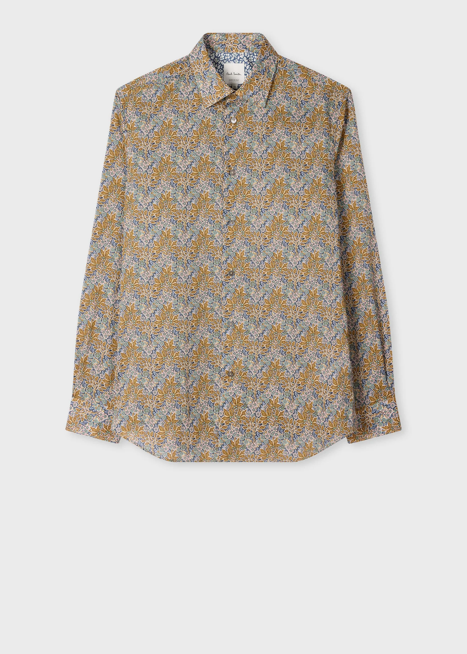 Tailored-Fit Yellow and Blue 'Liberty Floral' Print Shirt