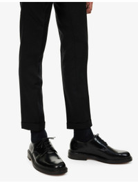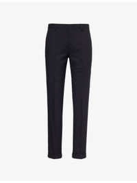 PRODUCT DETAILS - Paul Smith wool trousers - 100% wool - Button, hook-and-eye and zip-fly fastening - Slim fit, mid-rise, straight leg, waistband with belt loops, pleats down centre, turned up hem - Dry clean only - Made in Portugal - Model is 6ft 2in/1.88m and wears a size UK 30 - Midweight, non-stretch Ref: R04393085