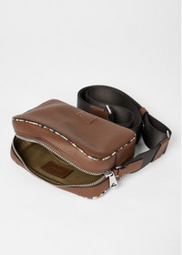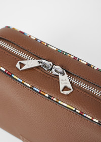 Crafted from premium leather, this tan flight bag combines style and practicality, complete with our 'Signature Stripe'; piping detail for a finishing touch. The compact design offers the perfect size for your daily essentials, complete with dual silver hardware zip fastening, finished with subtle branding, and spacious lining interior with additional storage options. Product Code: M1A-8157-TLEPIP-62