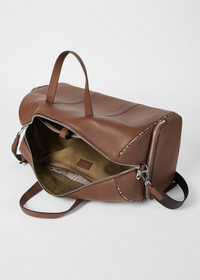 Made from premium tan calf leather with lamb leather trim, this sophisticated holdall is complete with our 'Signature Stripe'; piping detail for a finishing touch. Practical and stylish, this versatile travel bag offers ample interior space for your essentials, dual-zip fastening for added security and both handheld and removable strap options for versatile styling options. Product Code: M1A-8156-TLEPIP-62