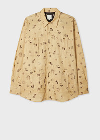 Made in Italy from soft 100% cotton, this tan shirt features a safari style design with four patch pockets and an all-over 'Travel' print. Cut for an oversized fit, this shirt is finished with a relaxed camp collar and contrast yoke and cuff lining - for an added twist. The Fit - Oversized Product Code: M1R-859Z-V02918-62