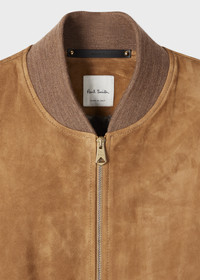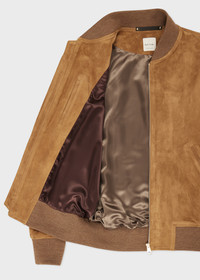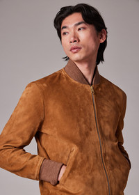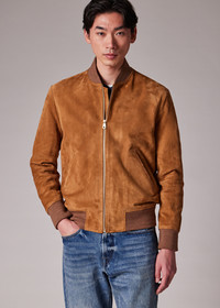Made in Italy from premium suede, this classic bomber shape features a timeless tan brown tone with contrast marl rib-knit collar, cuffs and waistband. Finished with a full contrast panel viscose lining for added comfort, this jacket comes complete with a tie-shape zip pull and angled jetted pockets. The Fit - Regular-Fit Product Code: M1R-280U-N00040-64A
