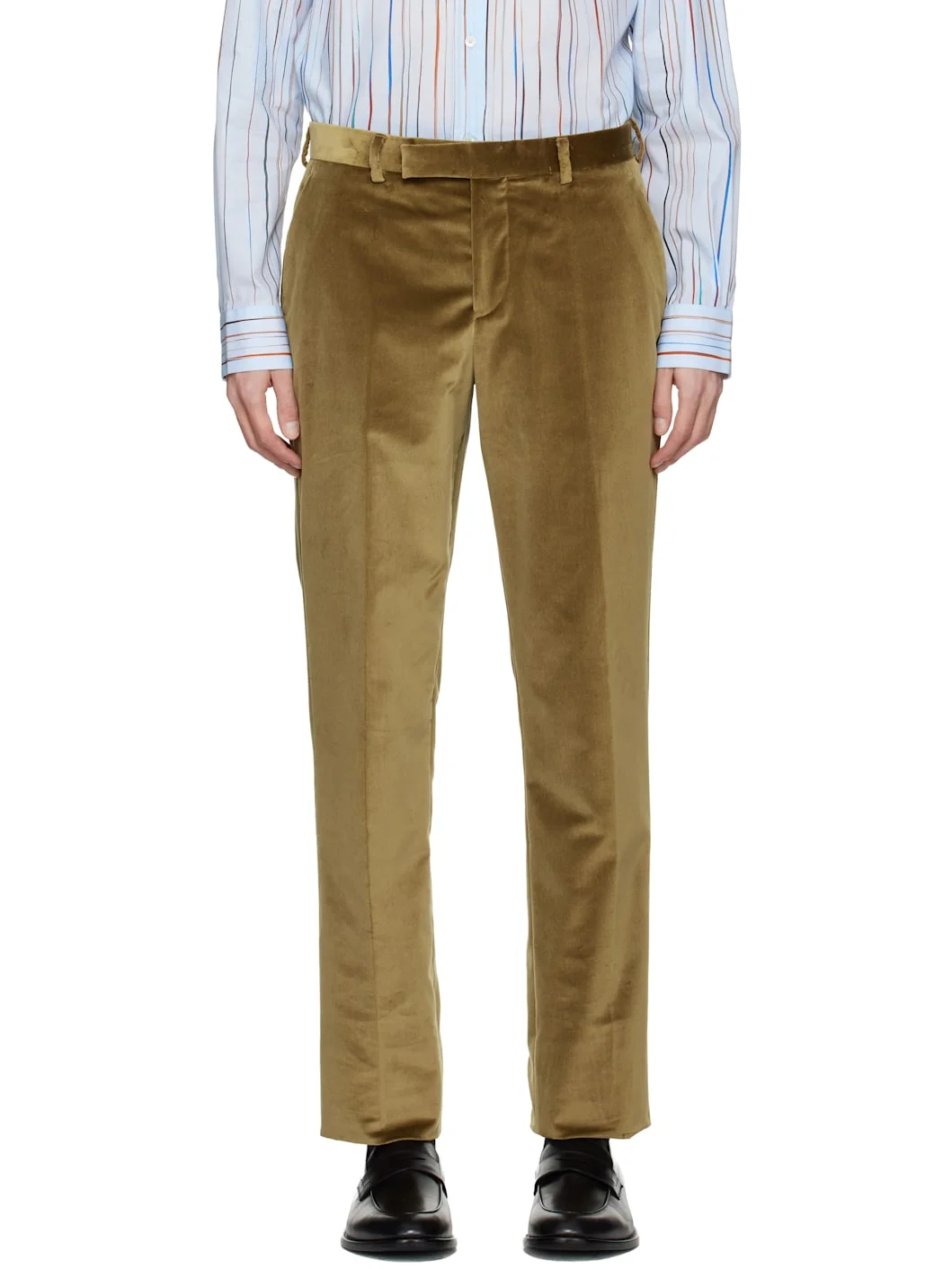 Cotton velvet trousers. · Tapered · Belt loops · Four-pocket styling · Zip fly · Creased legs Supplier color: Green 100% cotton. Made in Italy 252260M191006