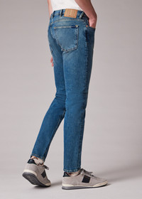 Made from our 11 1/4oz organic vintage stretch denim, these jeans feature an aged antique-wash finish. Cut in our tapered-fit, these jeans are finished with two rear patch pockets, embroidered stripe waistband patch and polka dot print pocket bags. The Size Model wears a size 30 Model measures: Height 6’ 2.5 / 189cm | Chest 35” / 89cm | Waist 29.5” / 75cm The Fit - Tapered-Fit Our most popular style of jeans, these have a touch more room than the Slim-Fit, but still with a trim silhouette. Again, they have a medium rise, which as well as offering comfort allows them to be dressed up or down. Product Code: M2R-301ZW-T21841-ANT