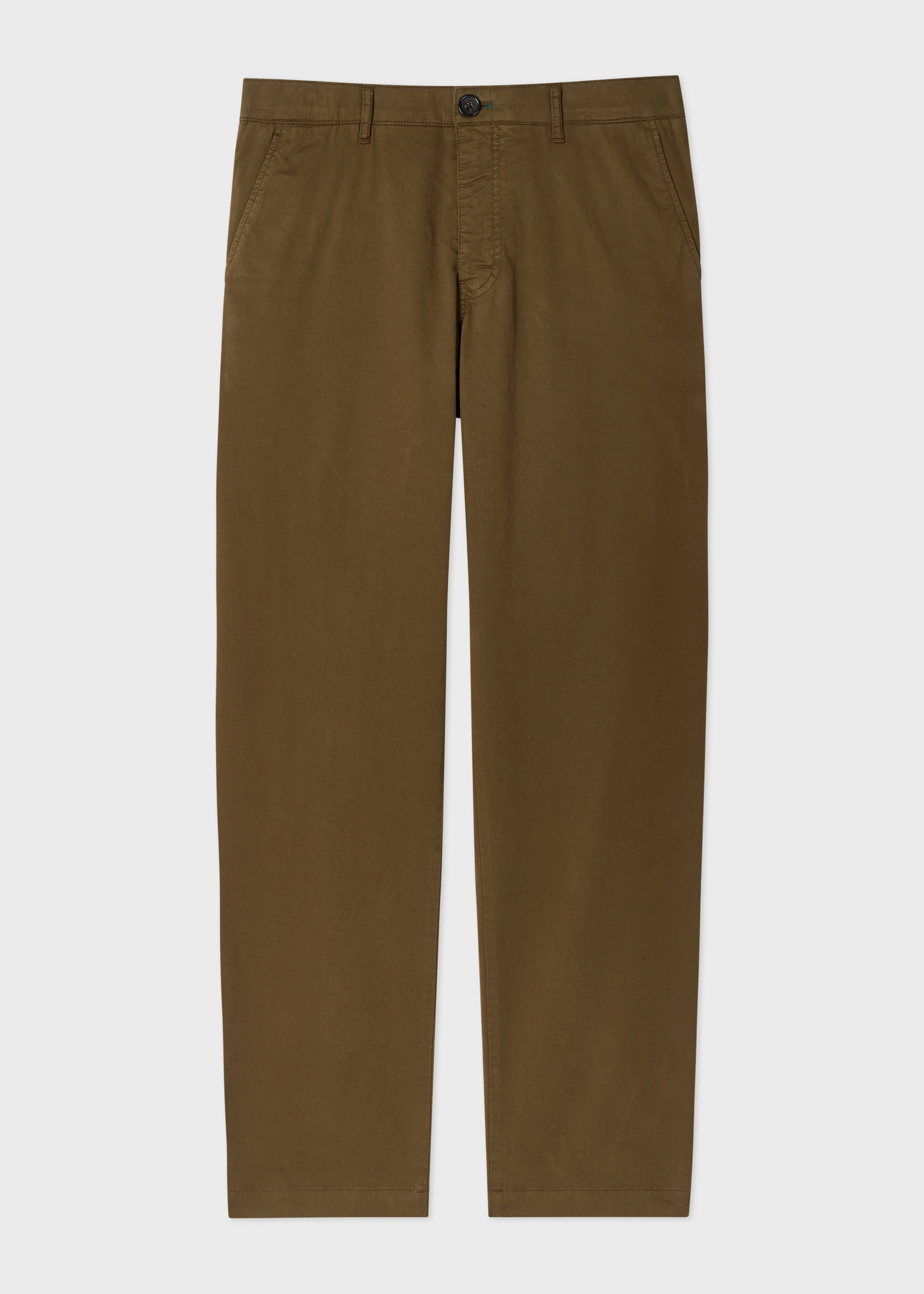 Made from organically grown cotton with stretch for comfort, these khaki chinos are cut for a tapered-fit. Ideal for everyday wear, these chinos are finished with a zip fly and button waistband. The Fit - Tapered-Fit fits looser through the thigh, with a taper from knee to hem Product Code: M2R-959R-V21697-35B