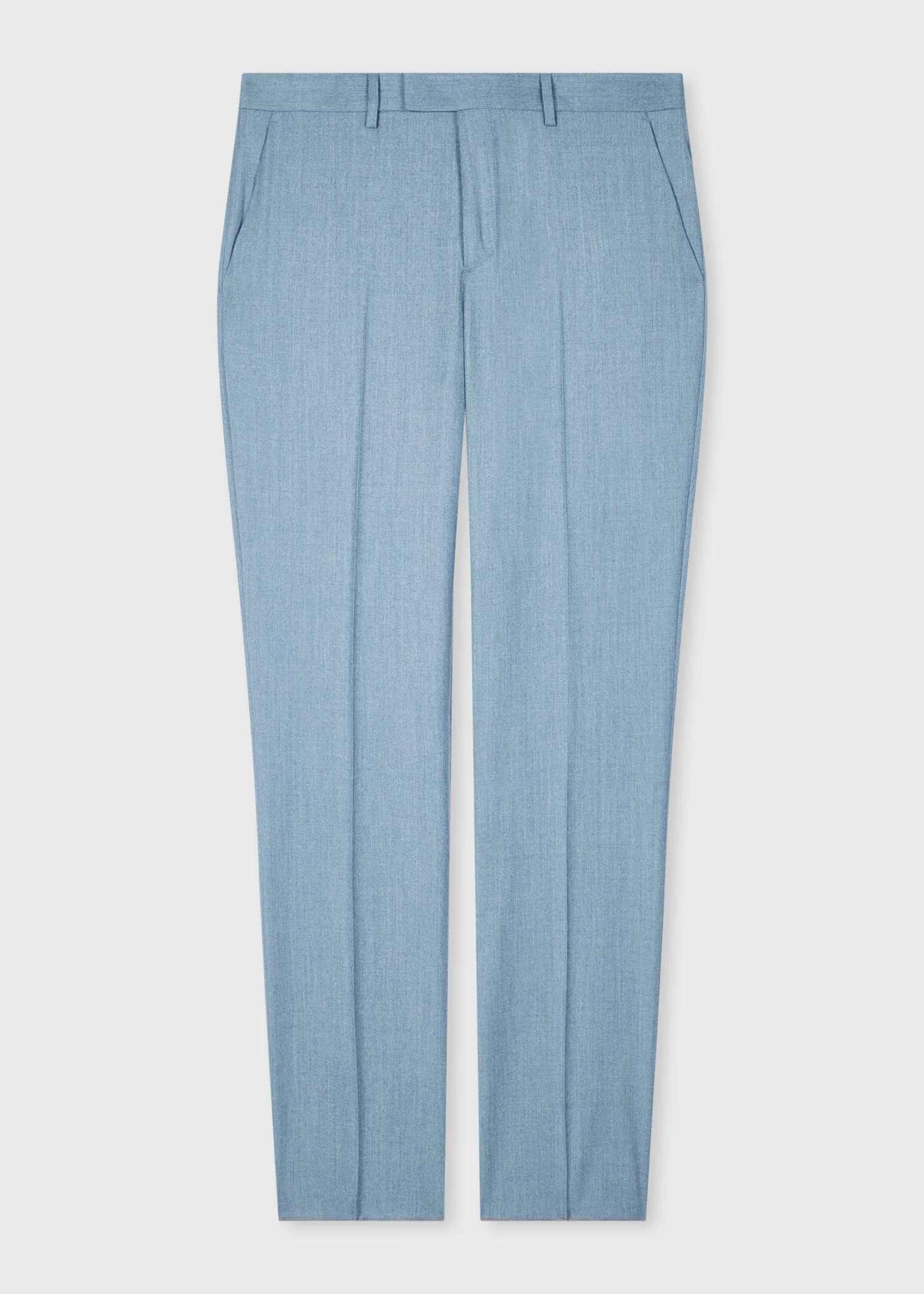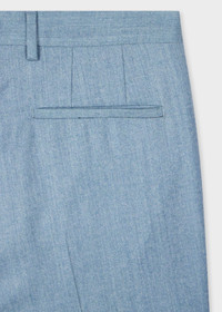 Made in Portugal from a wool and cashmere-blend flannel cloth in light blue, these trousers are cut for a tapered-fit. Complete an internal rubber grip on the waistband, that helps to keep shirting secure when tucked in. 90% Wool, 10% Cashmere Dry clean only Made in Portugal The Fit Tapered-Fit a low rise trouser, tapered through the knee and calf towards a narrow hem Product Code: M1R-925N-G00109-40A