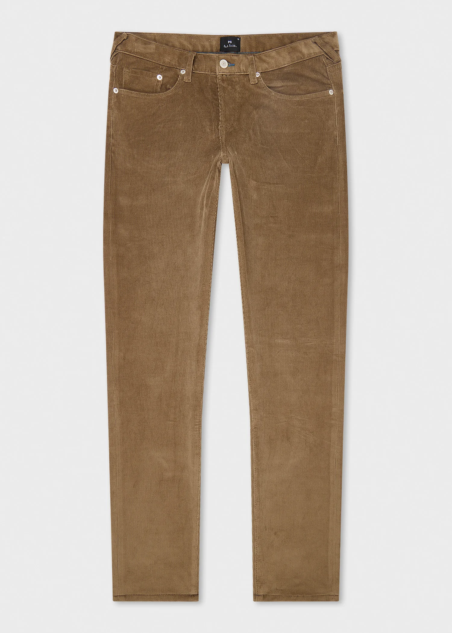 Made from organic cotton with stretch for comfort, these light brown trousers feature a textured corduroy finish. Cut for a tapered-fit, these versatile five-pocket trousers are finished with a PS Paul Smith waistband patch. The Fit - Tapered-Fit - Our most popular style of jeans - These have a touch more room than the Slim-Fit, but still with a trim silhouette - Medium rise, offering comfort and allowing them to be dressed up or down Product Code: M2R-301Z-T22223-65